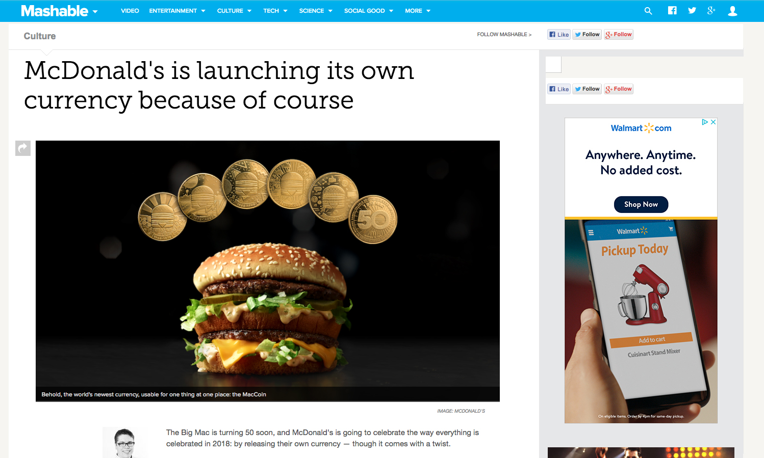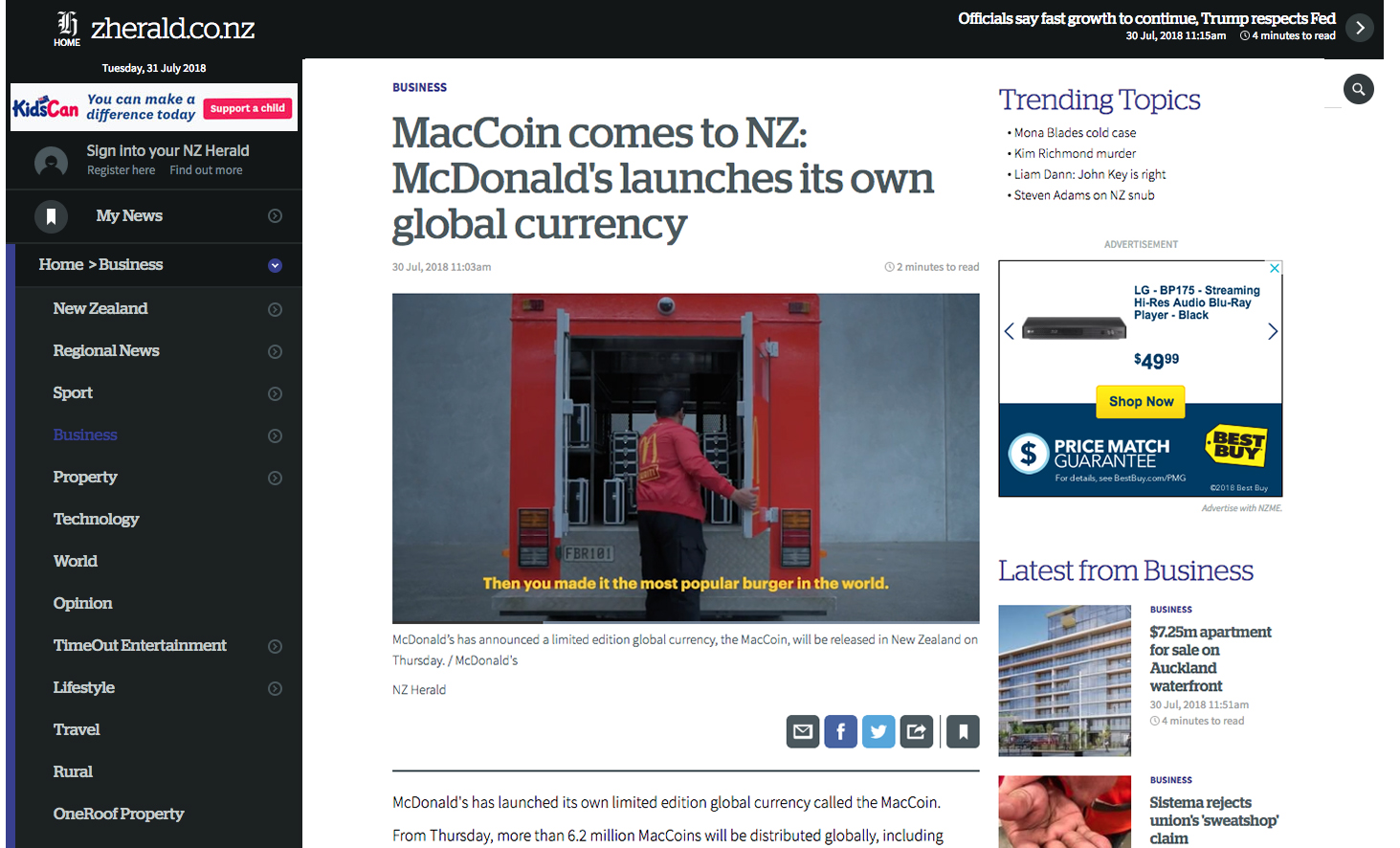 So, using the Big Mac Index as inspiration, we created the MacCoin—a first-of-its-kind global currency, worth one Big Mac in over 50 countries around the world.