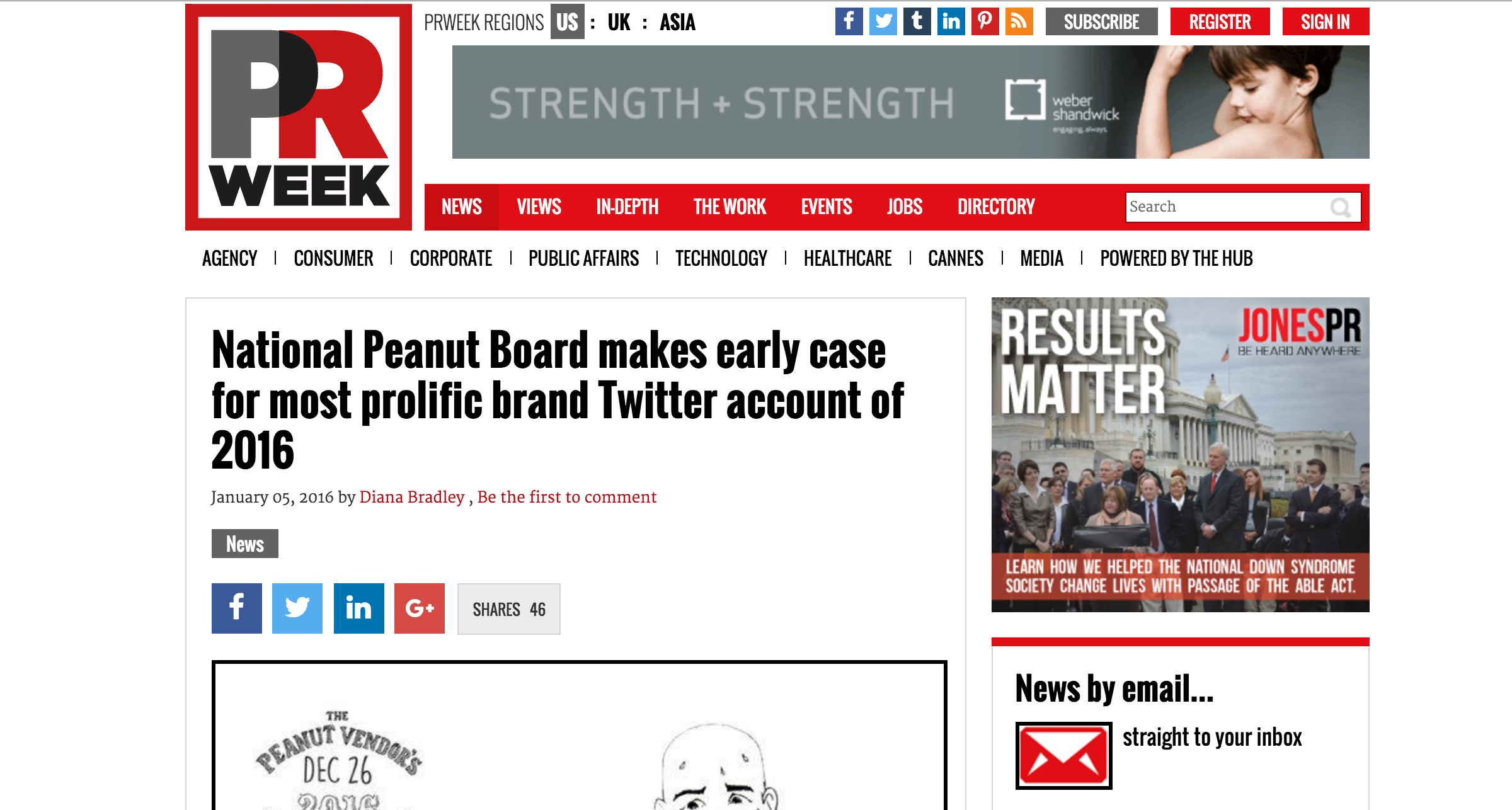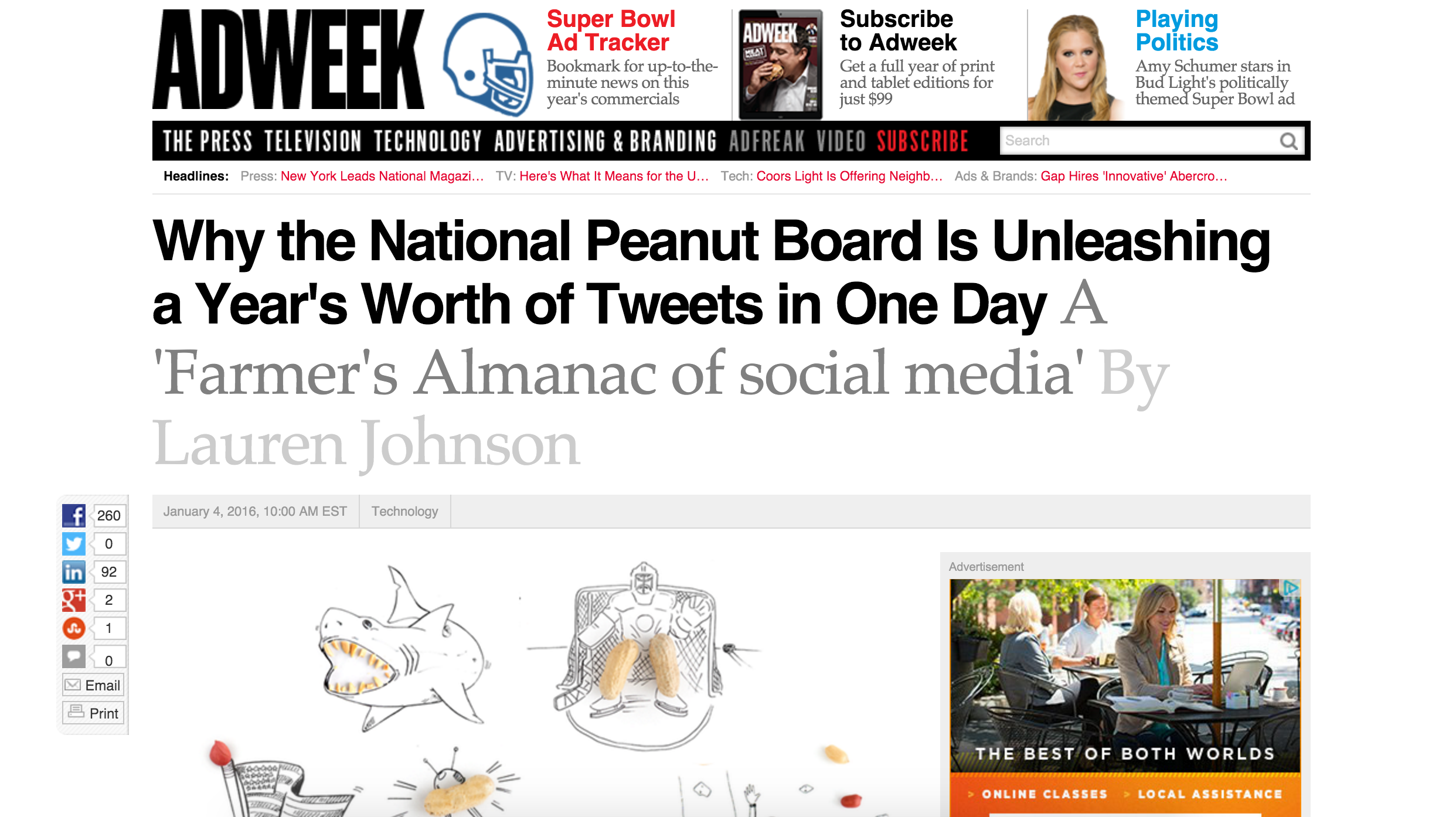 At the start of 2016, we had to launch the National Peanut Board’s Twitter. Since they’re not a brand people are familiar with, we had to do something different.